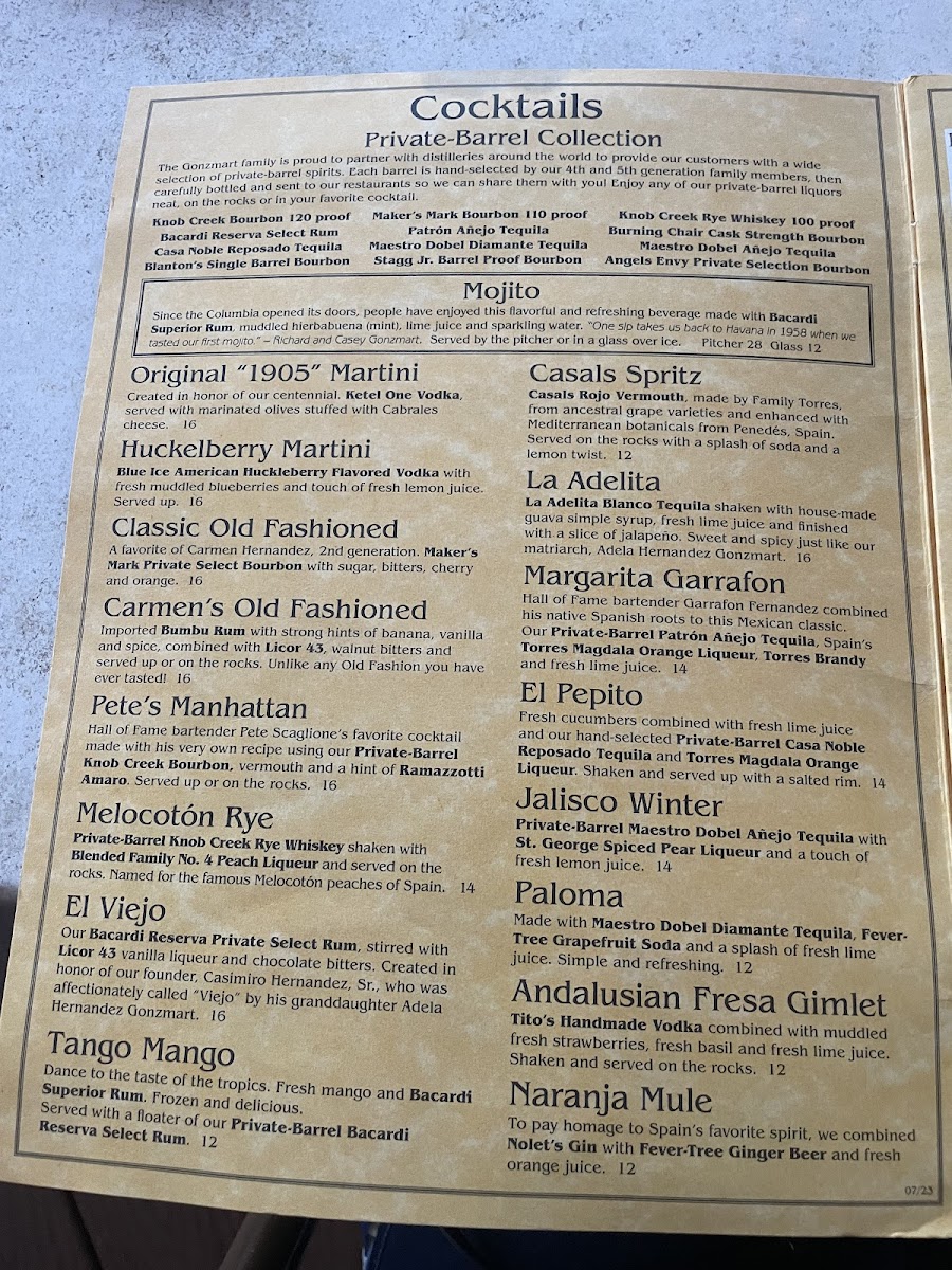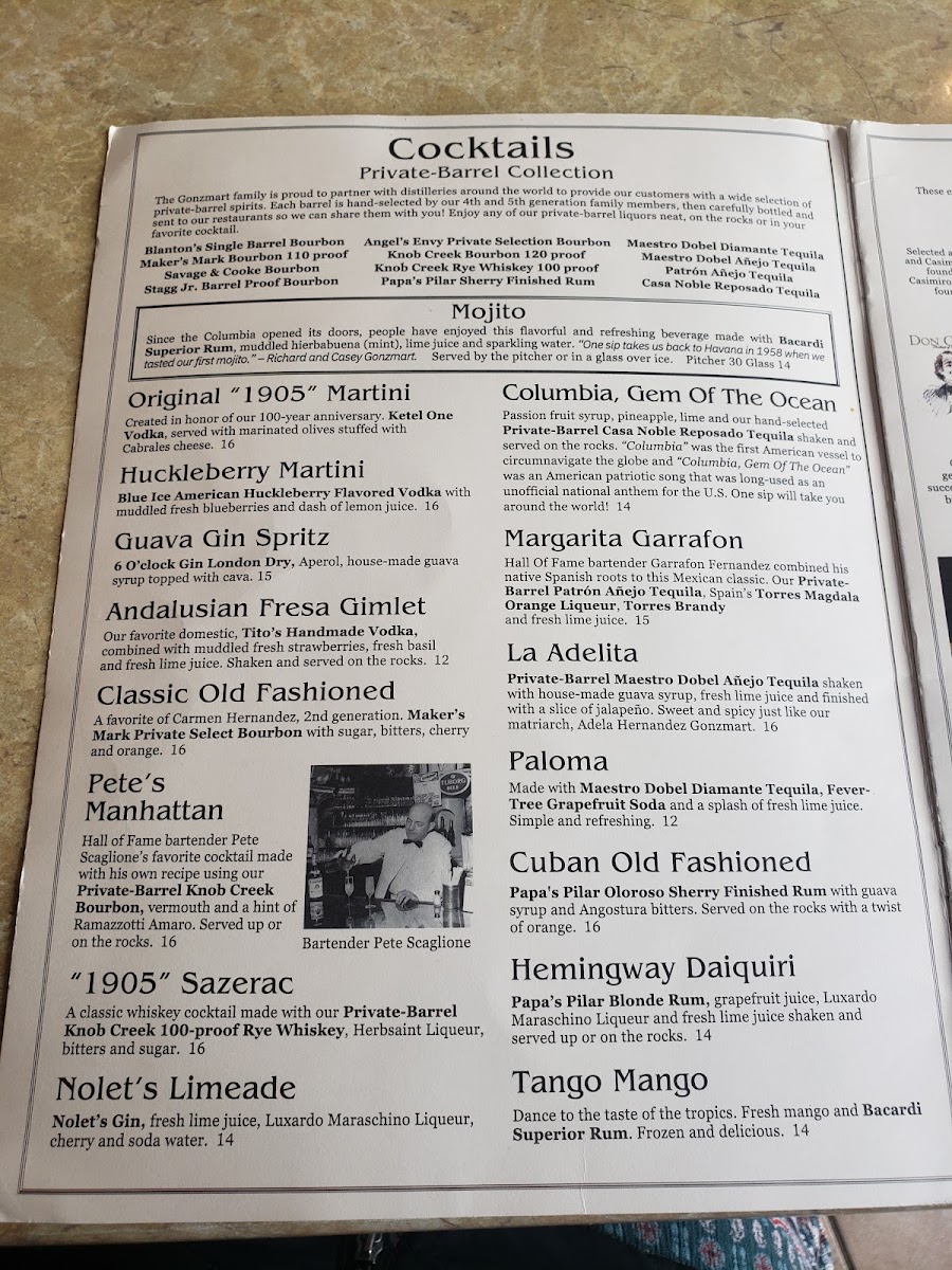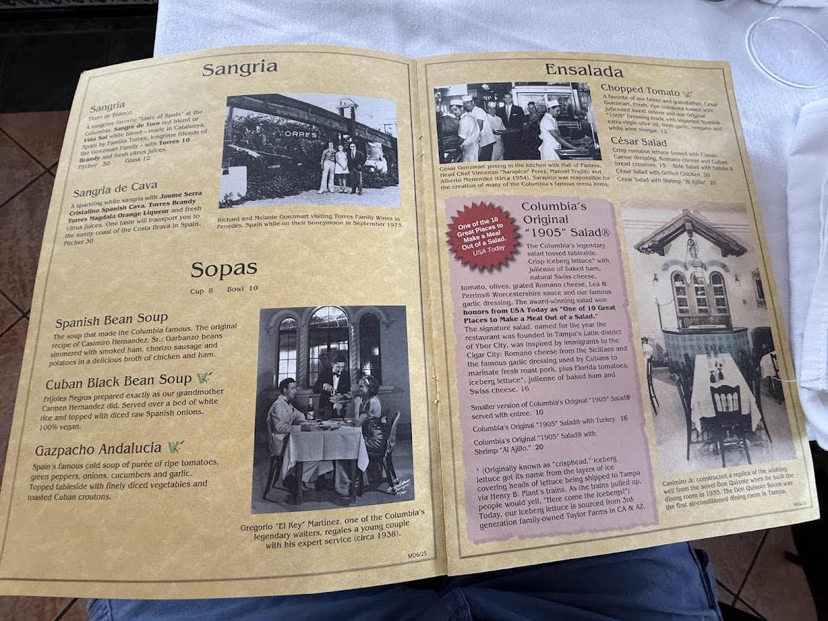 The soup that made the Columbia famous. The original recipe of Casimiro Hernandez, Sr.: Garbanzo beans simmered with smoked ham, chorizo sausage and potatoes in a delicious broth of chicken and ham.